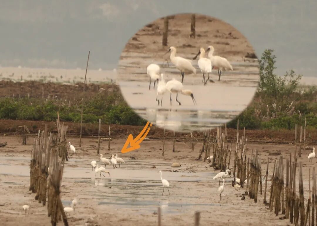 3月25日,镇海湾红树林造林区汶村段发现黑脸琵鹭