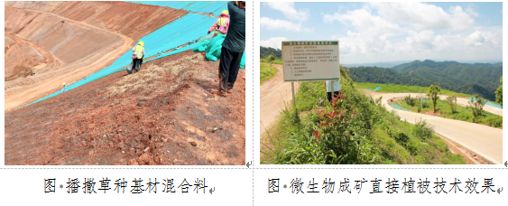 利用挂网喷播和生态棒构建植物生长基质层,添加嗜酸硫酸盐菌剂、有机质材料控制坡面产酸,外挂PE管种植灌木袋苗,在石质高陡边坡环境下实现植被快速恢复,降低施工成本20%,缩短工期约30天。该技术成功申请《矿区边坡生态挂网喷播植被修复技术》专利,对坡面和酸性土壤治理具有推广示范性。